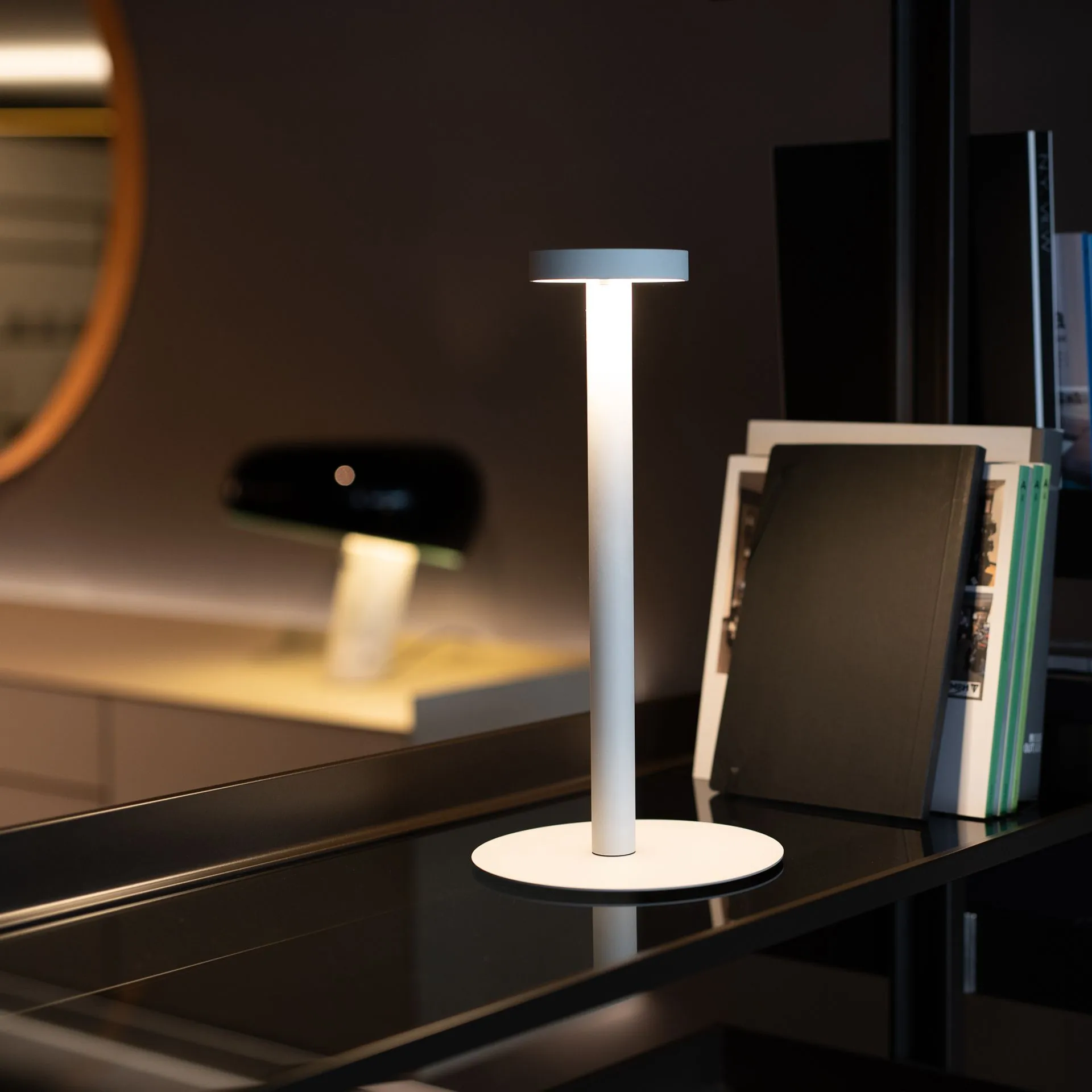 Lampada da tavolo modello Tetatet finitura bianca.
