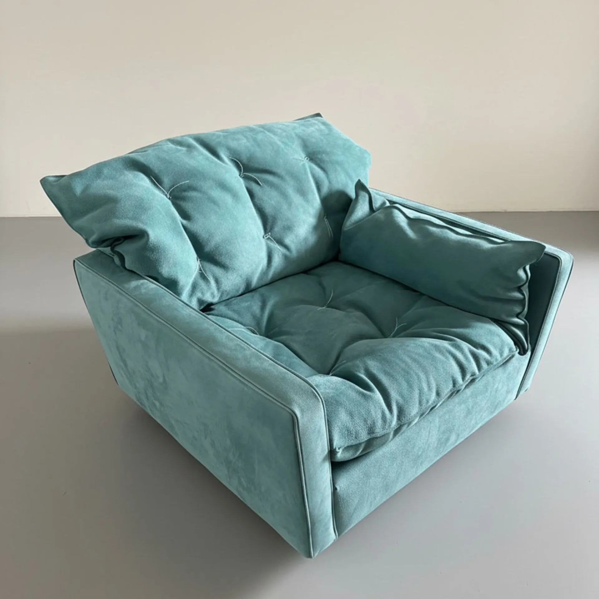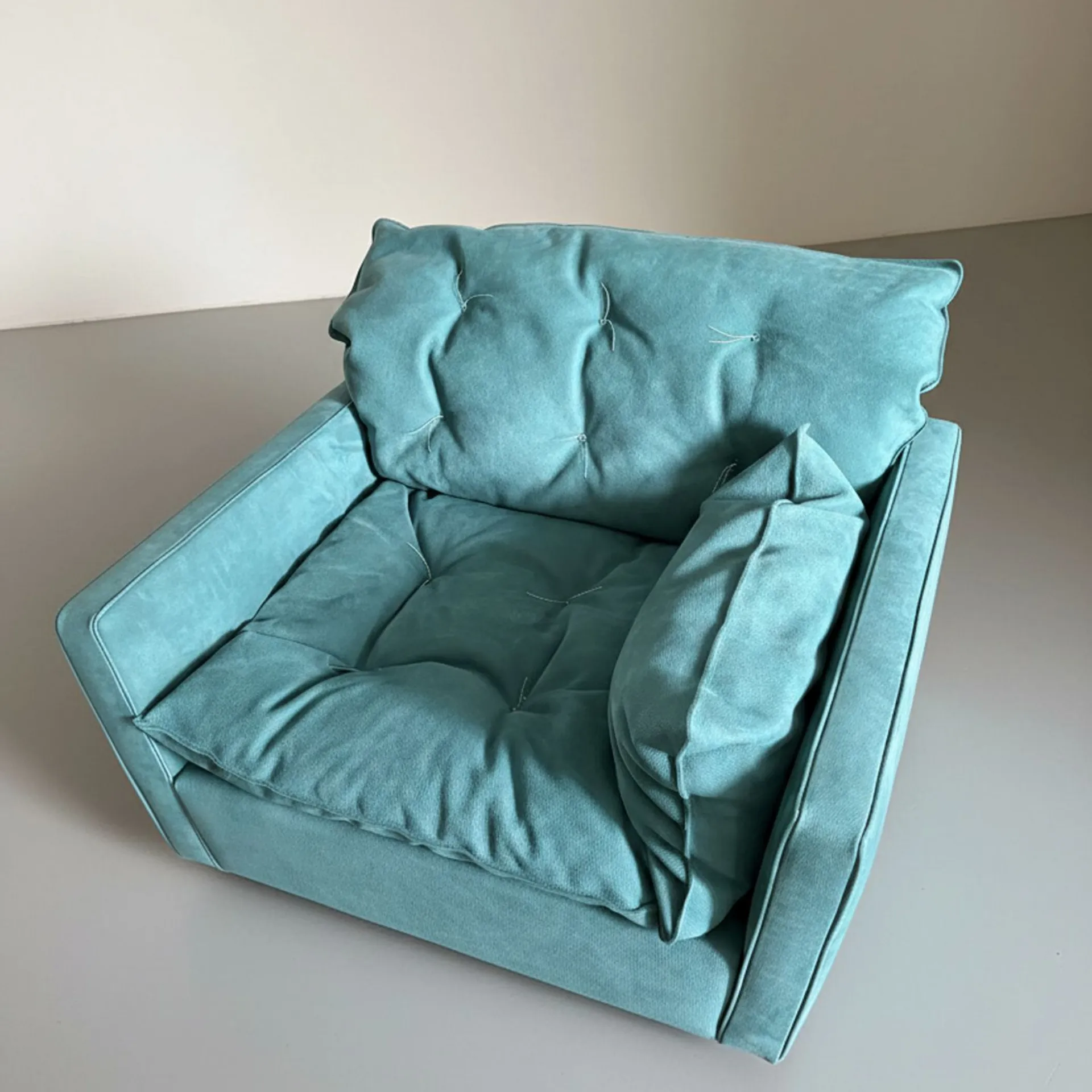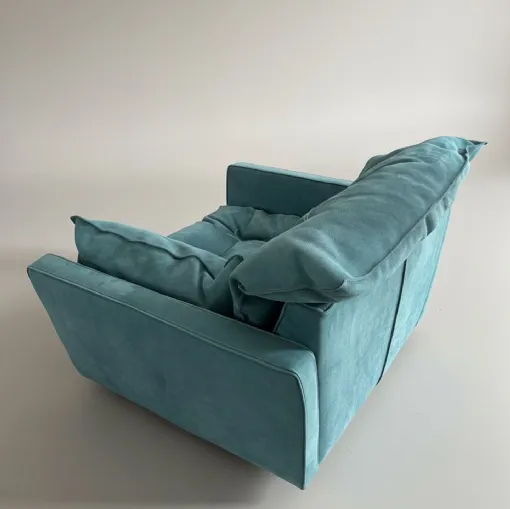 Poltrona mod.Sorrento 115X105X84 CAT.A rivestimento in pelle Nabuck Lagoon con filo decorativo bianco